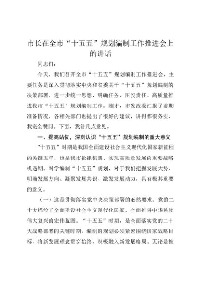 / 【七哥公文】2025年:市长在全市“十五五”规划编制工作推进会上的讲话+更多免费公文+VX:QiGeGongWen2024