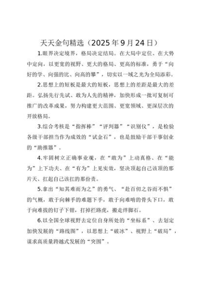 / 【七哥公文】2025年:天天金句精选(2025年9月24日)+更多免费公文+VX:QiGeGongWen2024