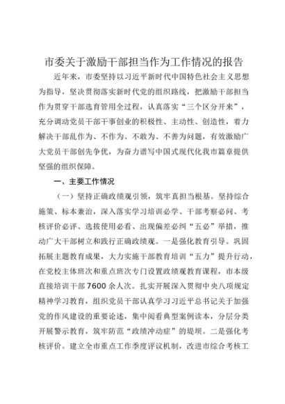 / 【七哥公文】2025年:市委关于激励干部担当作为工作情况的报告+更多免费公文+VX:QiGeGongWen2024