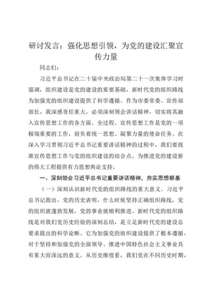 / 【七哥公文】2025年:研讨发言:强化思想引领,为党的建设汇聚宣传力量+更多免费公文+VX:QiGeGongWen2024