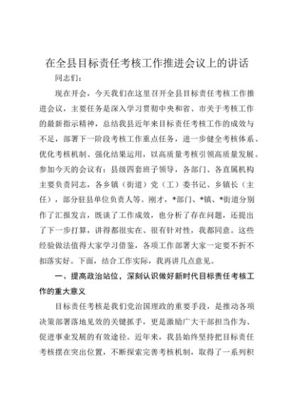 / 【七哥公文】2025年:在全县目标责任考核工作推进会议上的讲话+更多免费公文+VX:QiGeGongWen2024