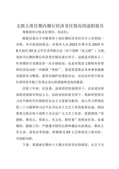 / 【七哥公文】2025年:文联主席任期内履行经济责任情况的述职报告+更多免费公文+VX:QiGeGongWen2024