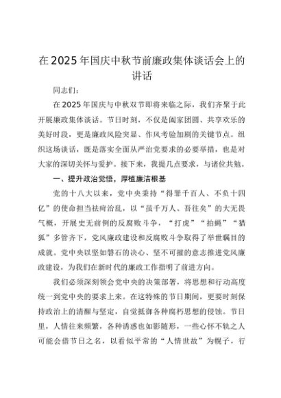 / 【七哥公文】2025年:在2025年国庆中秋节前廉政集体谈话会上的讲话+更多免费公文+VX:QiGeGongWen2024