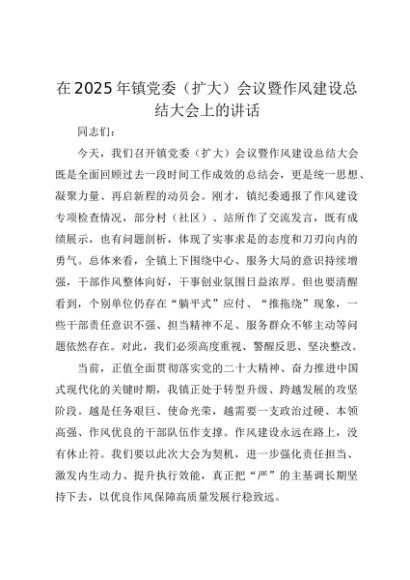 【七哥公文】2025年:在2025年镇党委(扩大)会议 暨作风建设总结大会上的讲话+更多免费公文+VX:QiGeGongWen2024