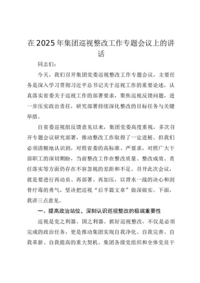 / 【七哥公文】2025年:在2025年集团巡视整改工作专题会议上的讲话+更多免费公文+VX:QiGeGongWen2024