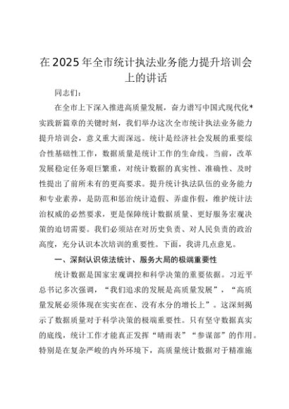 【七哥公文】2025年:在2025年全市统计执法业务能力提升培训会上的讲话+更多免费公文+VX:QiGeGongWen2024