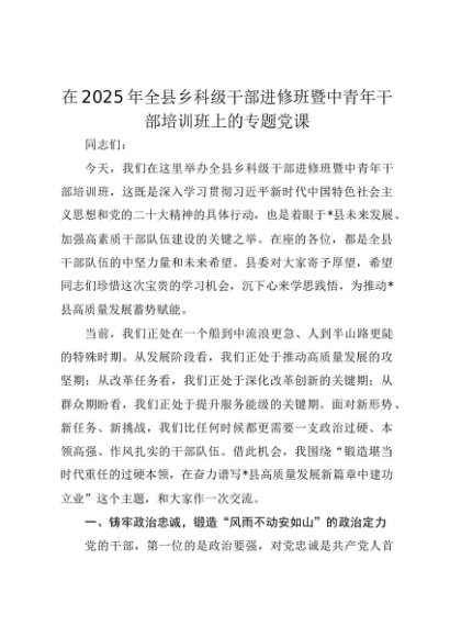 【七哥公文】2025年:在2025年全县乡科级干部进修班暨中青年干部培训班上的专题党课+更多免费公文+VX:QiGeGongWen2024