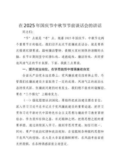 / 【七哥公文】2025年:在2025年国庆节中秋节节前谈话会的讲话+更多免费公文+VX:QiGeGongWen2024