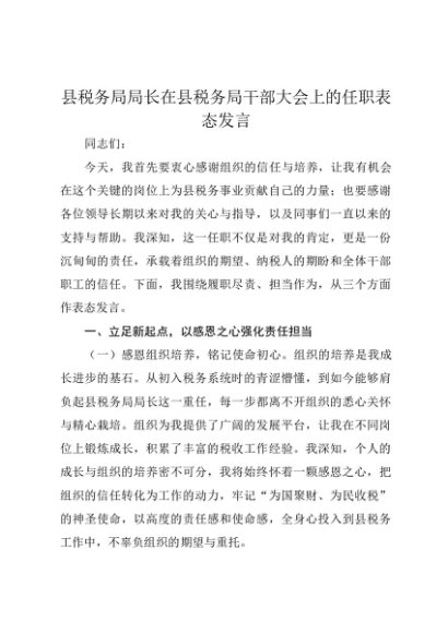 / 【七哥公文】2025年:县税务局局长在县税务局干部大会上的任职表态发言+更多免费公文+VX:QiGeGongWen2024