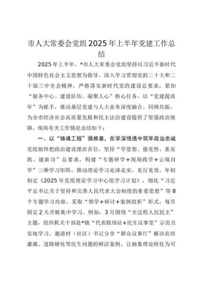 / 【七哥公文】2025年:市人大常委会党组2025年上半年党建工作总结+更多免费公文+VX:QiGeGongWen2024
