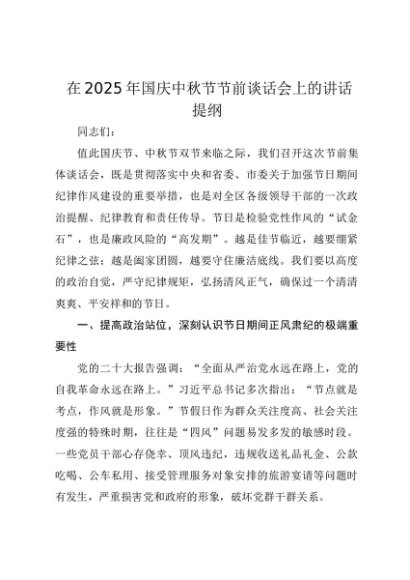 【七哥公文】2025年:在2025年国庆中秋节节前谈话会上的讲话提纲+更多免费公文+VX:QiGeGongWen2024