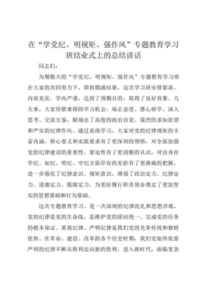 【七哥公文】2025年:在“学党纪、明规矩、强作风”专题教育学习班结业式上的总结讲话+更多免费公文+VX:QiGeGongWen2024