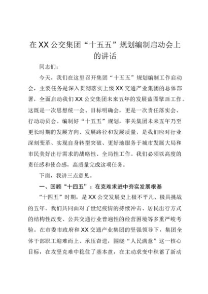 / 【七哥公文】2025年:在XX公交集团“十五五”规划编制启动会上的讲话+更多免费公文+VX:QiGeGongWen2024