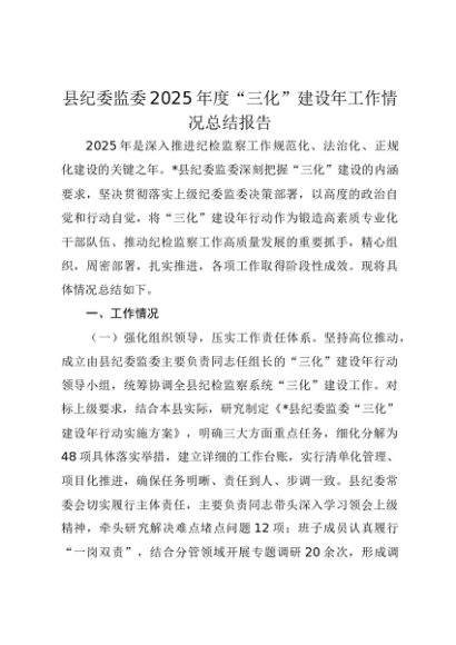 【七哥公文】2025年:县纪委监委2025年度“三化”建设年工作情况总结报告+更多免费公文+VX:QiGeGongWen2024