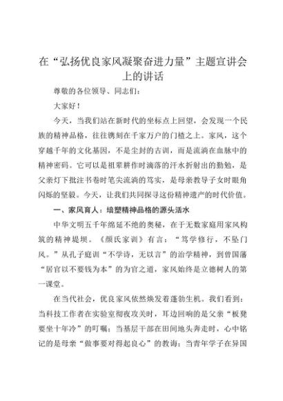 【七哥公文】2025年:在“弘扬优良家风凝聚奋进力量”主题宣讲会上的讲话+更多免费公文+VX:QiGeGongWen2024