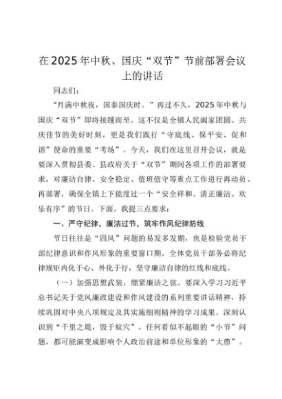 【七哥公文】2025年:在2025年中秋、国庆“双节”节前部署会议上的讲话+更多免费公文+VX:QiGeGongWen2024