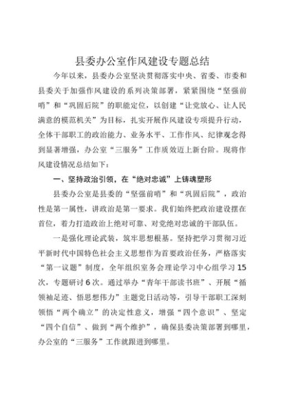 / 【七哥公文】2025年:县委办公室作风建设专题总结+更多免费公文+VX:QiGeGongWen2024