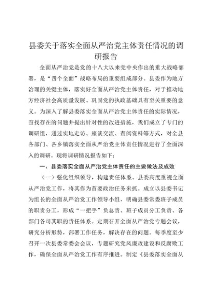 / 【七哥公文】2025年:县委关于落实全面从严治党主体责任情况的调研报告+更多免费公文+VX:QiGeGongWen2024