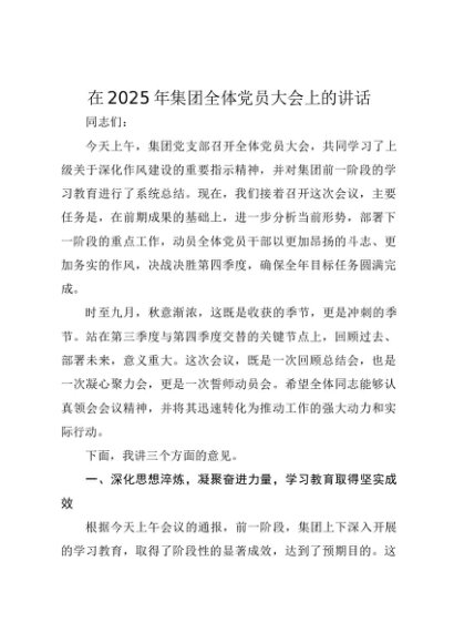 / 【七哥公文】2025年:在2025年集团全体党员大会上的讲话+更多免费公文+VX:QiGeGongWen2024