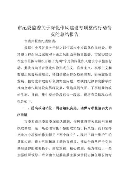 【七哥公文】2025年:市纪委监委关于深化作风建设专项整治行动情况的总结报告+更多免费公文+VX:QiGeGongWen2024