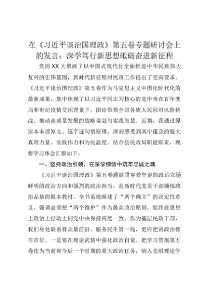 / 【七哥公文】2025年:在《习近平谈治国理政》第五卷专题研讨会上的发言+更多免费公文+VX:QiGeGongWen2024