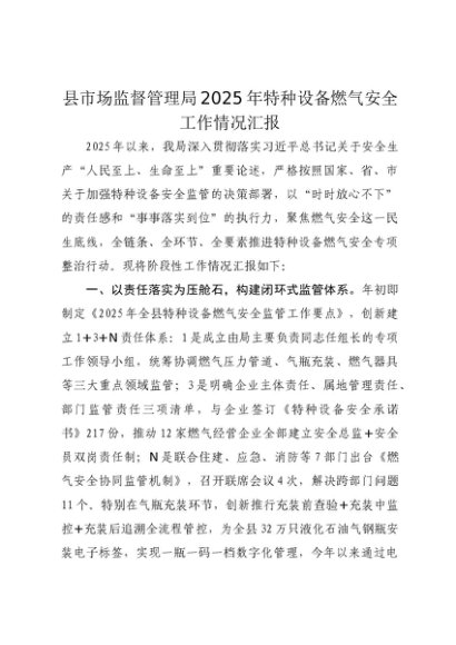 【七哥公文】2025年:县市场监督管理局2025年特种设备燃气安全工作情况汇报+更多免费公文+VX:QiGeGongWen2024