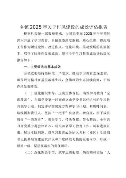 / 【七哥公文】2025年:乡镇2025年关于作风建设的成效评估报告+更多免费公文+VX:QiGeGongWen2024