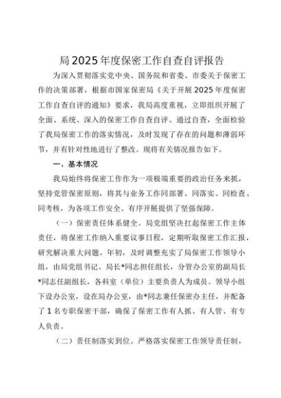 / 【七哥公文】2025年:局2025年度保密工作自查自评报告+更多免费公文+VX:QiGeGongWen2024
