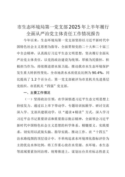 【七哥公文】2025年:市生态环境局第一党支部2025年上半年履行全面从严治党主体责任工作情况报告+更多免费公文+VX:QiGeGongWen2024