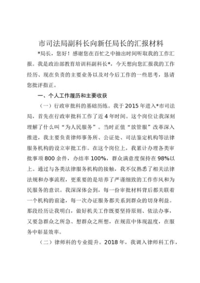 / 【七哥公文】2025年:市司法局副科长向新任局长的汇报材料+更多免费公文+VX:QiGeGongWen2024