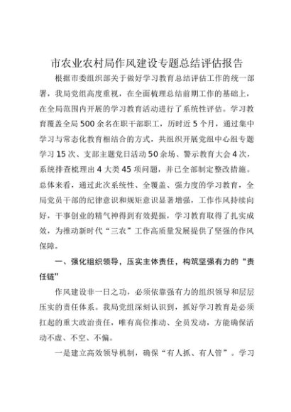 【七哥公文】2025年:市农业农村局作风建设专题总结评估报告+更多免费公文+VX:QiGeGongWen2024