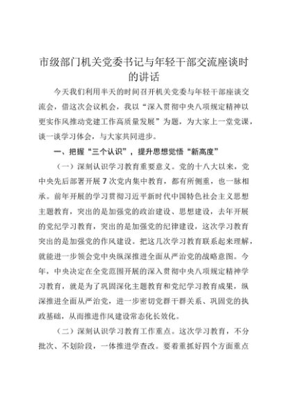 / 【七哥公文】2025年:市级部门机关党委书记与年轻干部交流座谈时的讲话+更多免费公文+VX:QiGeGongWen2024