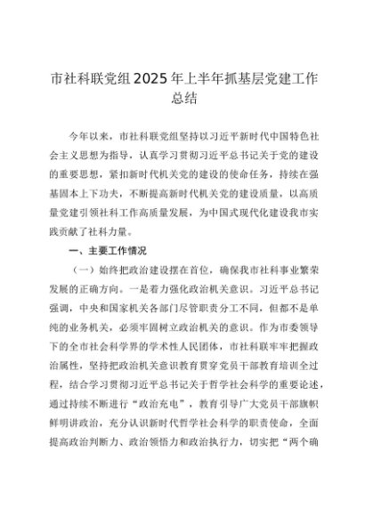 / 【七哥公文】2025年:市社科联党组2025年上半年抓基层党建工作总结+更多免费公文+VX:QiGeGongWen2024
