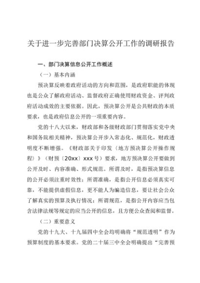 / 【七哥公文】2025年:关于进一步完善部门决算公开工作的调研报告+更多免费公文+VX:QiGeGongWen2024