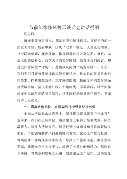 / 【七哥公文】2025年:节前纪律作风警示谈话会讲话提纲+更多免费公文+VX:QiGeGongWen2024