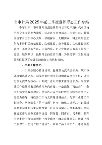 / 【七哥公文】2025年:市审计局2025年前三季度意识形态工作总结+更多免费公文+VX:QiGeGongWen2024