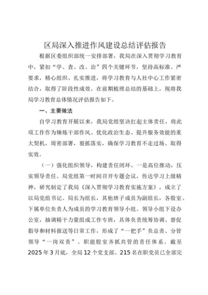 / 【七哥公文】2025年:区局深入推进作风建设总结评估报告+更多免费公文+VX:QiGeGongWen2024