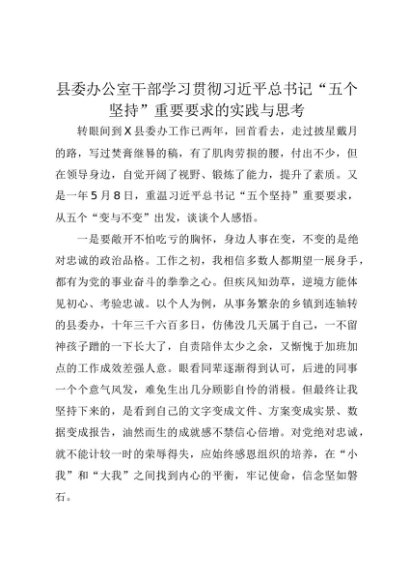 【七哥公文】2025年:县委办公室干部学习贯彻习近平总书记“五个坚持”重要要求的实践与思考+更多免费公文+VX:QiGeGongWen2024