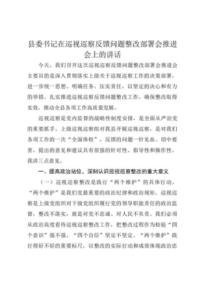 【七哥公文】2025年:县委书记在巡视巡察反馈问题整改部署会推进会上的讲话+更多免费公文+VX:QiGeGongWen2024