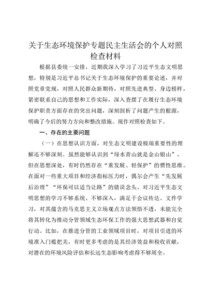 / 【七哥公文】2025年:关于生态环境保护专题民主生活会的个人对照检查材料+更多免费公文+VX:QiGeGongWen2024