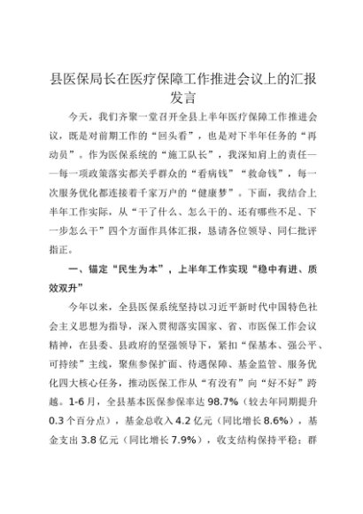 / 【七哥公文】2025年:县医保局长在医疗保障工作推进会议上的汇报发言+更多免费公文+VX:QiGeGongWen2024