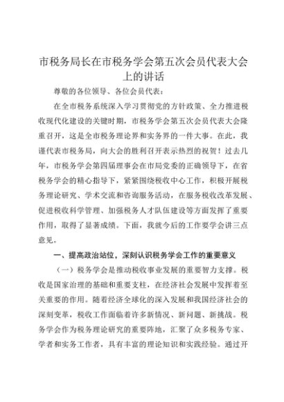 【七哥公文】2025年:市税务局长在市税务学会第五次会员代表大会上的讲话+更多免费公文+VX:QiGeGongWen2024