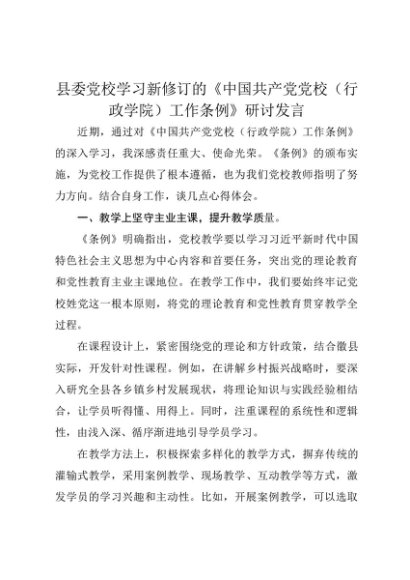 【七哥公文】2025年:县委党校学习新修订的《中国共产党党校(行政学院)工作条例》研讨发言+更多免费公文+VX:QiGeGongWen2024
