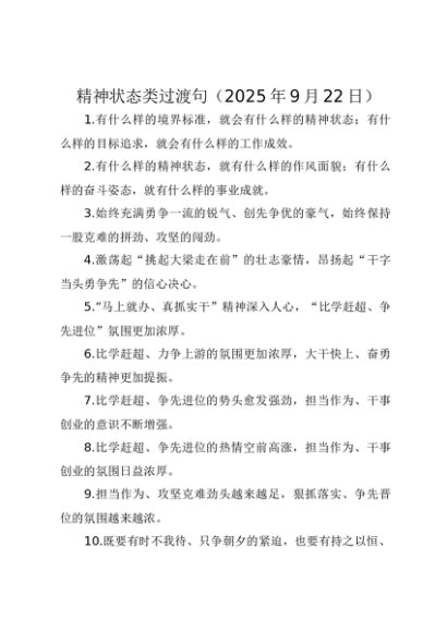 【七哥公文】2025年:精神状态类过渡句(2025年9月22日)+更多免费公文+VX:QiGeGongWen2024