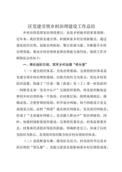 / 【七哥公文】2025年:区党建引领乡村治理建设工作总结+更多免费公文+VX:QiGeGongWen2024