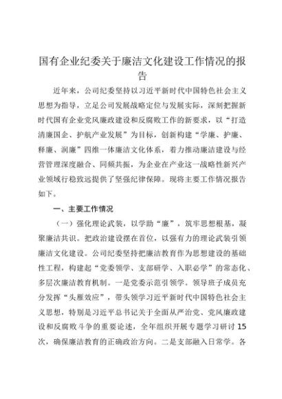 / 【七哥公文】2025年:国有企业纪委关于廉洁文化建设工作情况的报告+更多免费公文+VX:QiGeGongWen2024