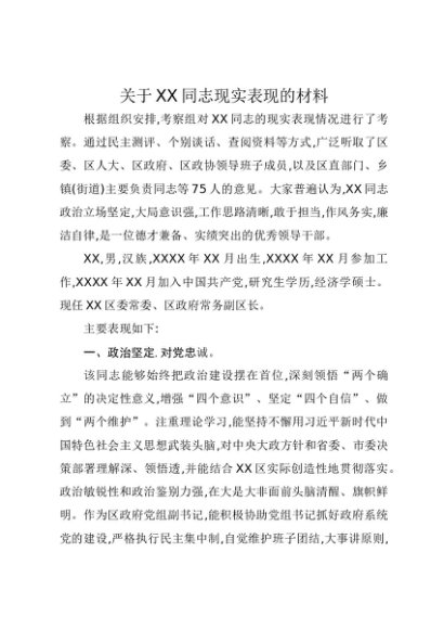 【七哥公文】2025年:关于XX同志现实表现的材料+更多免费公文+VX:QiGeGongWen2024
