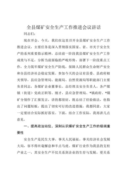/ 【七哥公文】2025年:全县煤矿安全生产工作推进会议讲话+更多免费公文+VX:QiGeGongWen2024