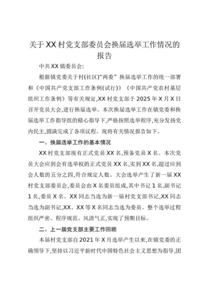 / 【七哥公文】2025年:关于XX村党支部委员会换届选举工作情况的报告+更多免费公文+VX:QiGeGongWen2024