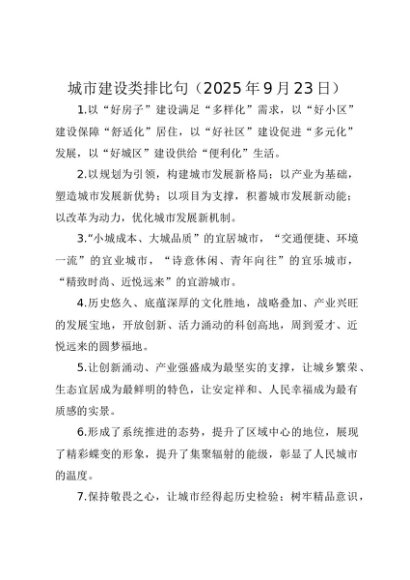 【七哥公文】2025年:城市建设类排比句(2025年9月23日)+更多免费公文+VX:QiGeGongWen2024